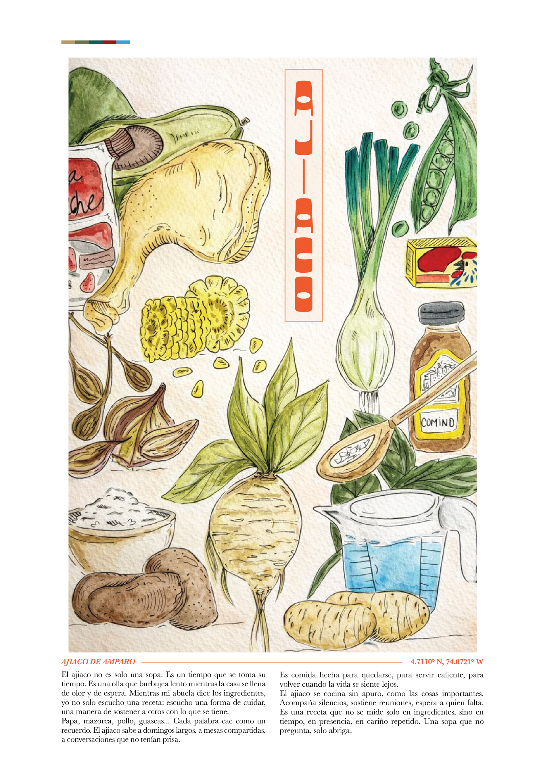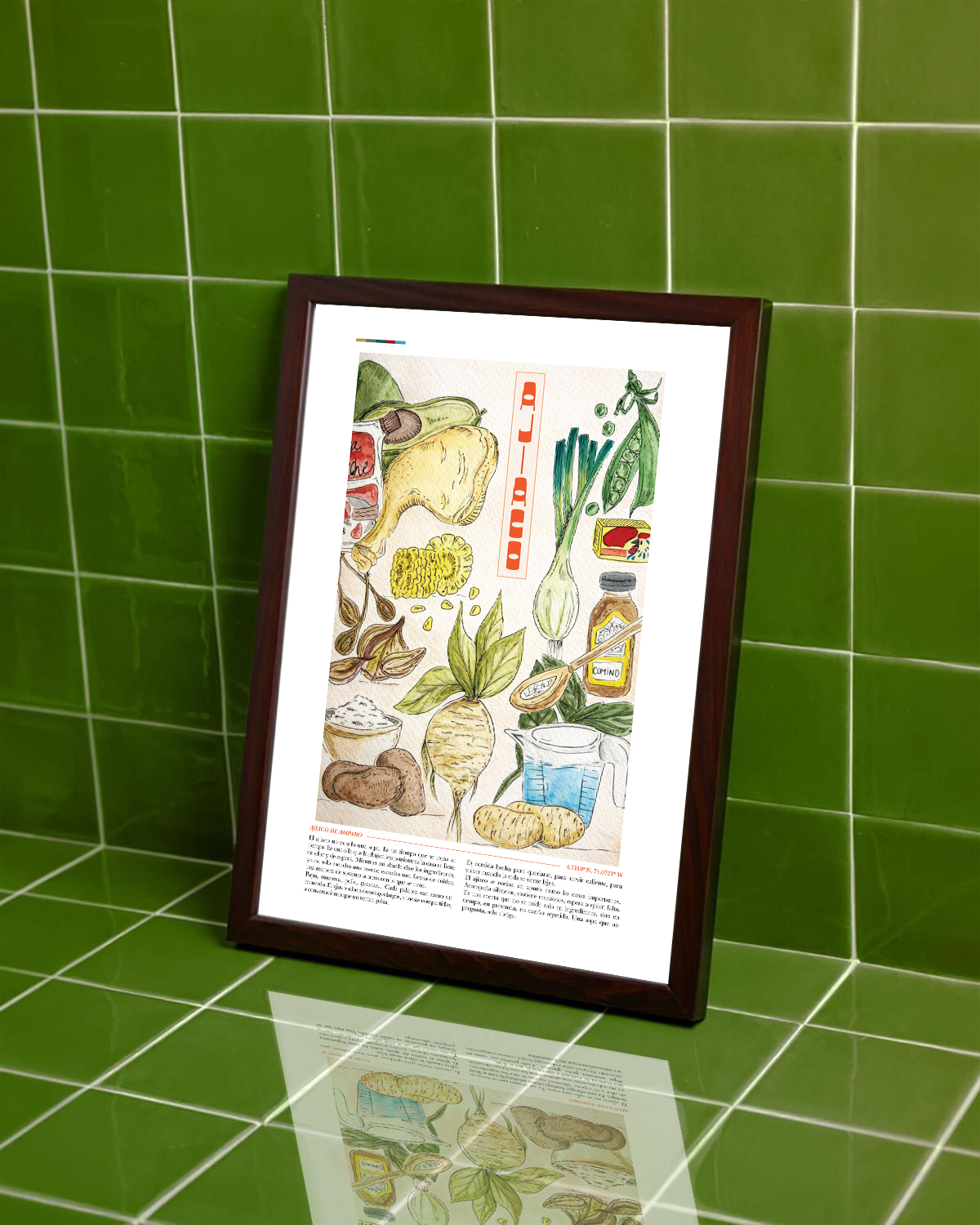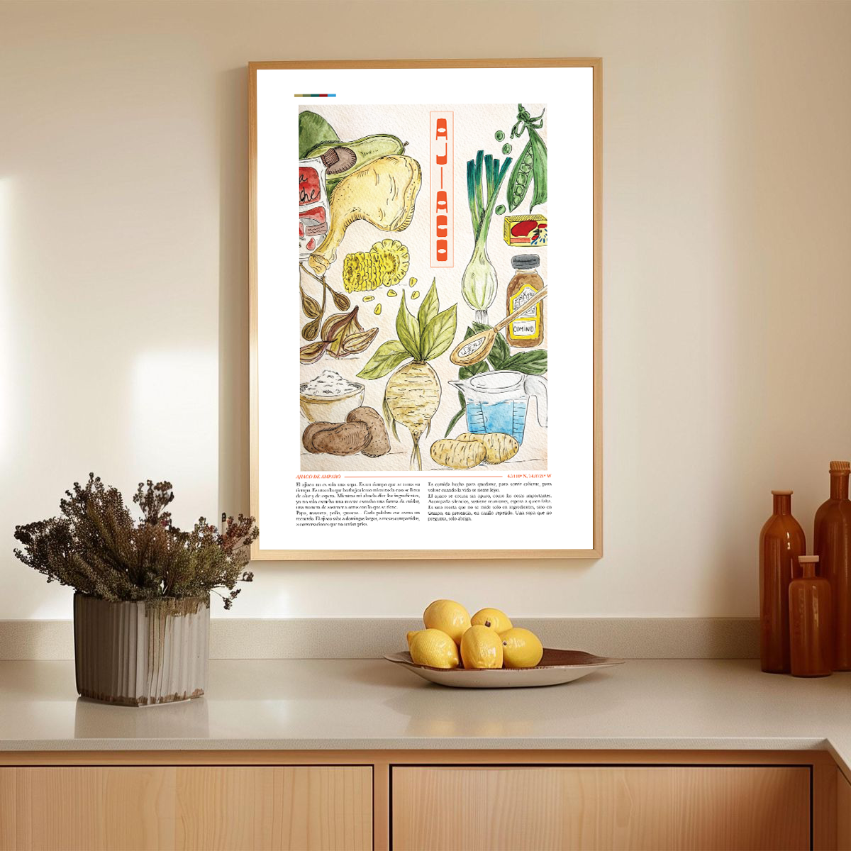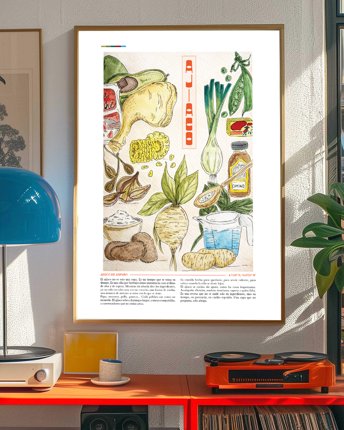 ***The original artwork and final poster include the ajiaco recipe as part of the design, with the intention of preserving and protecting it for those who acquire the piece. The images shown online contain different text for display purposes.***