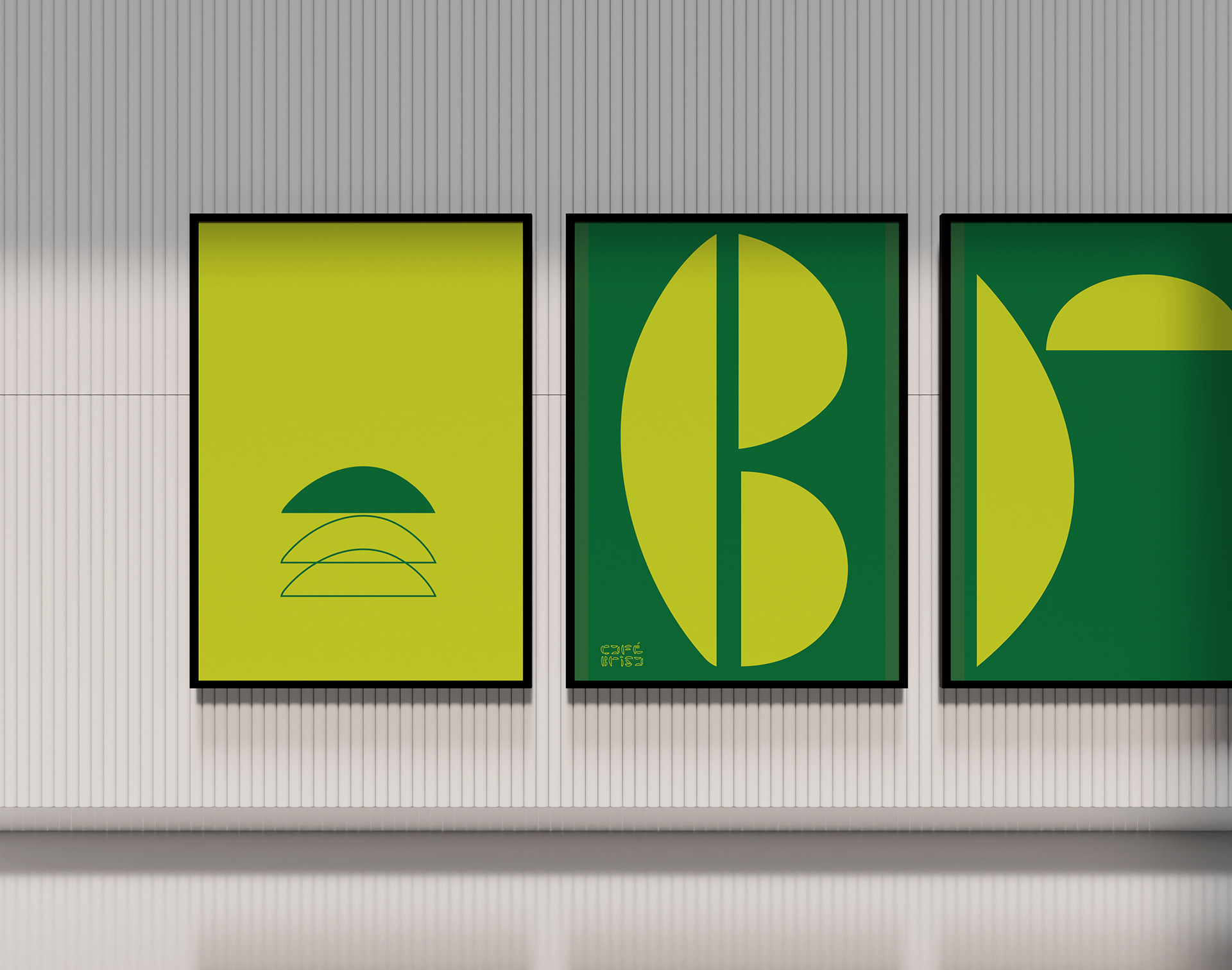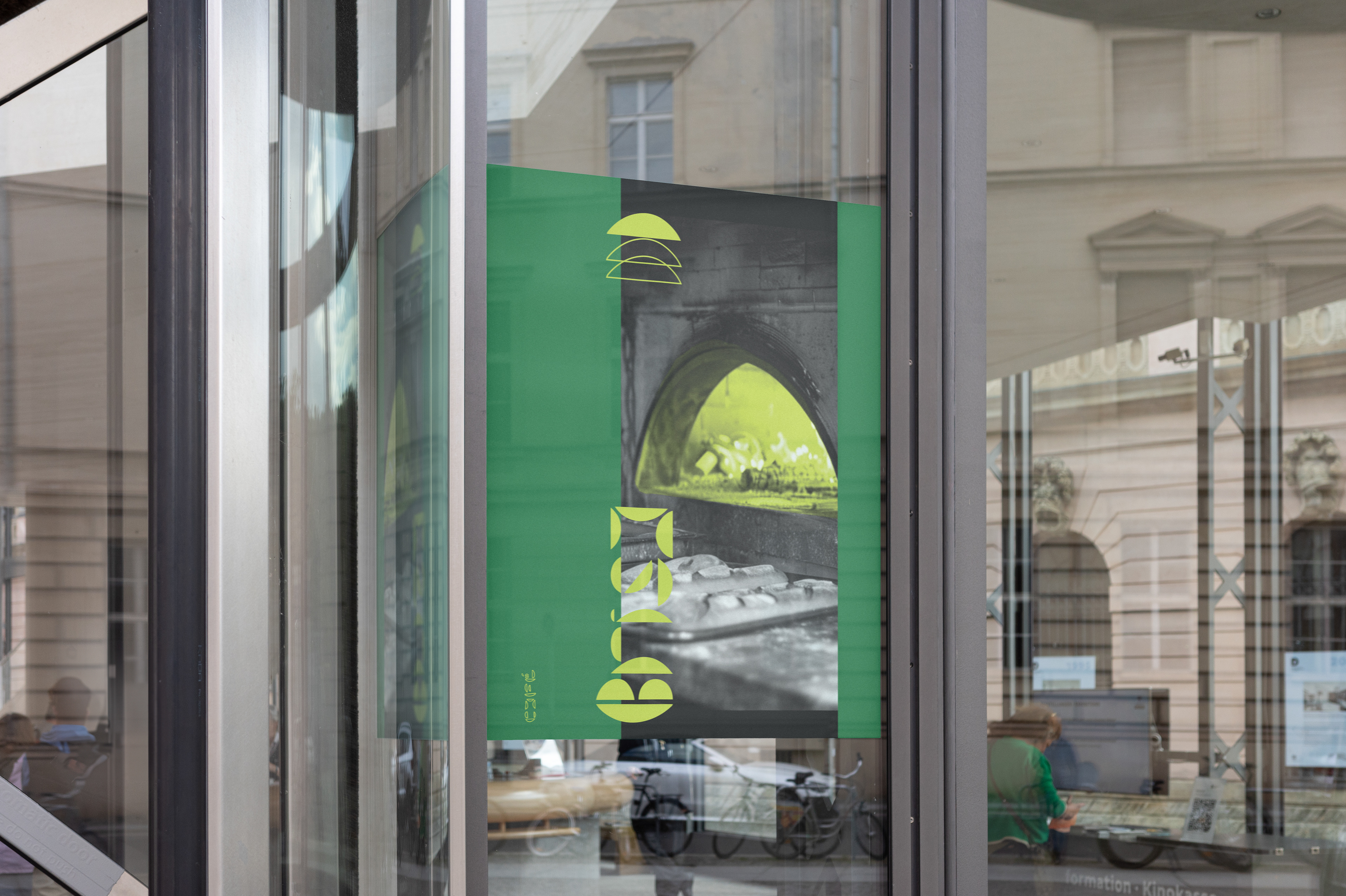 A brand identity for a new café, inspired by its 100% artisanalproducts and traditional ovens. The logo and typography take shape from the ovens themselves, using a semi-circle as a key design element. The color palette is minimal yet impactful, featuring a single color in two shades of green, reflecting the brand’s natural and handcrafted essence.