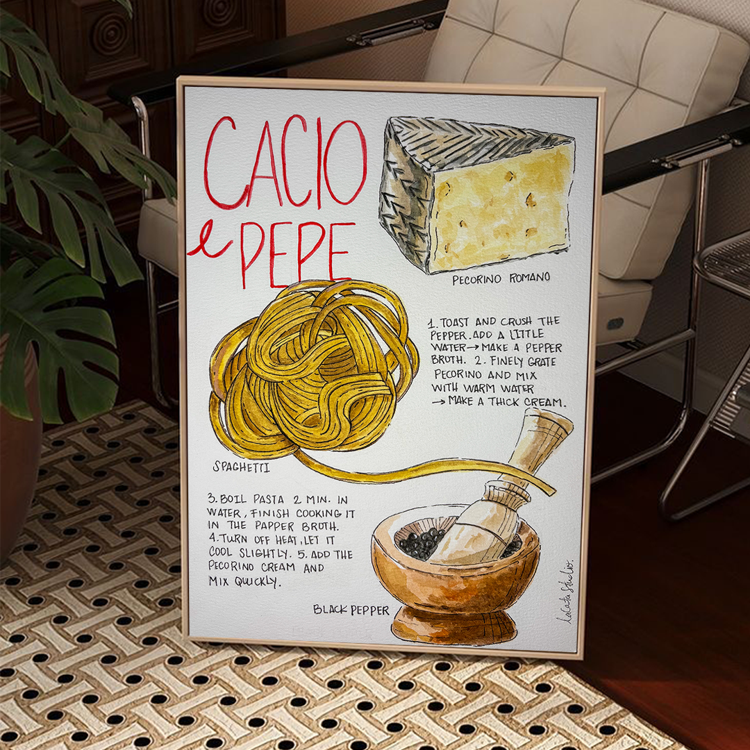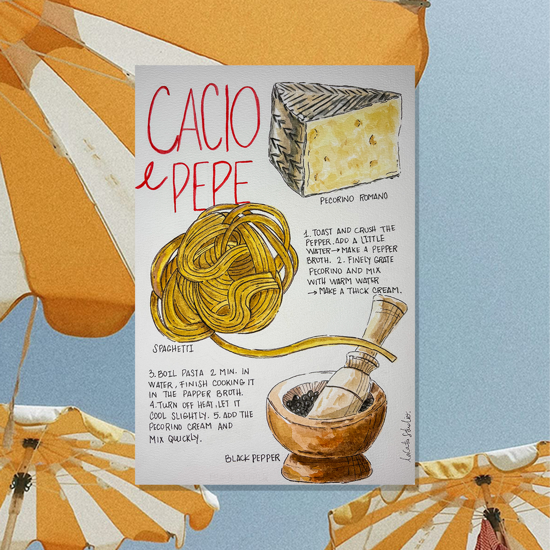 The original recipe was painted by hand using gouache and outlined with a technical pen.
