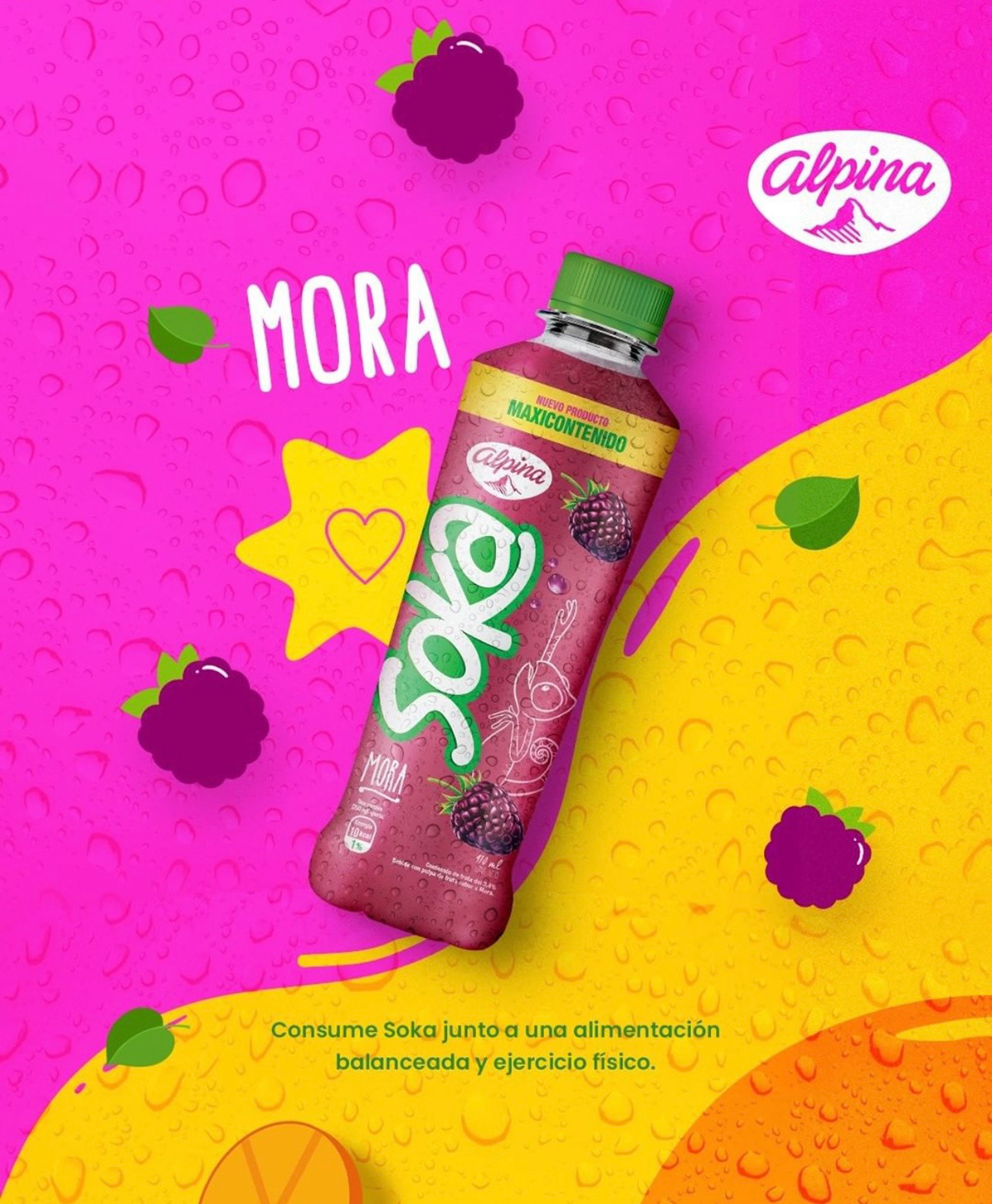 Developed for Alpina, a Colombian food company, SOKA is a juice brand designed specifically for kids. The branding needed to be fun, indulgent, and visually striking, ensuring it instantly grabs children's attention while maintaining a playful and engaging identity.